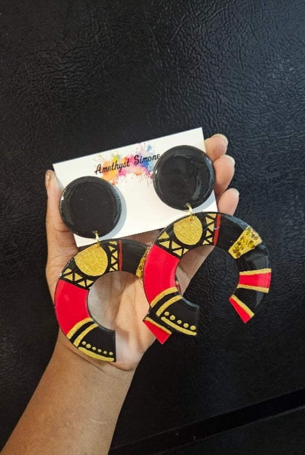Hand-painted 1.5 & 3in wooden shapes coated with resin.
